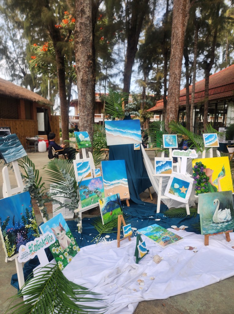 Mixed-media Artworks: Unique 3D creations that blend professional pigments with organic elements like seashells, sand, wood, and stone. This fusion creates a captivating visual depth and a novel tactile experience for the viewer.